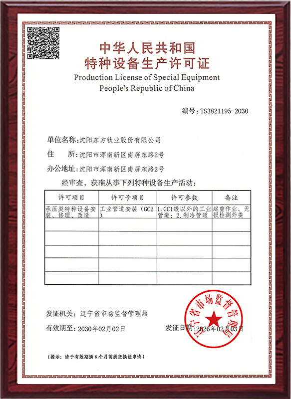 • Good news! The key technology and application of ultra large titanium and titanium alloy pressure vessels for industrial wastewater treatment by Dongfang Titanium Industry has won the third prize of Liaoning Province Science and Technology Progress Award