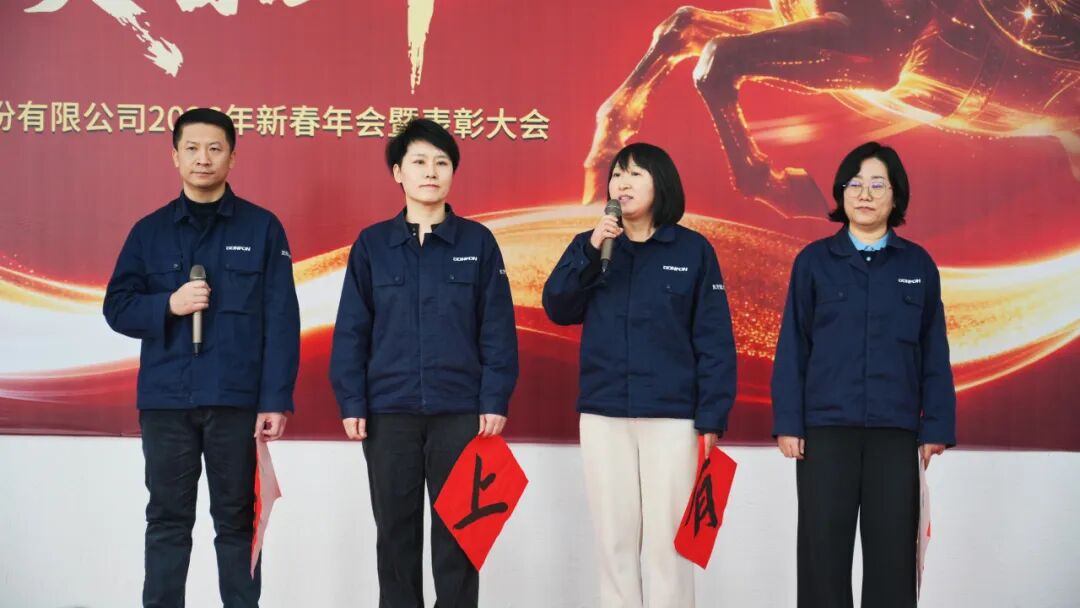 Subsequently, Mr. Ding, Mr. Zhang, Mr. Meng, and Mr. Jia led their respective teams to the stage in turn, delivering New Year greetings to all employees. In their New Year greetings, the senior management team comprehensively summarized the remarkable achievements in strategic advancement, technological research and development, operational optimization, and production management over the past year, based on their respective functional areas. They unanimously affirmed the crucial role of team collaboration and innovative practice in enhancing the core competitiveness of the enterprise. Looking ahead, the senior management emphasized that they would continue to strengthen market development, optimize organizational efficiency, and continue to practice the corporate spirit of "thinking big, being practical, and turning the impossible into the possible". Based on a new starting point, they would unite their efforts, seize opportunities in change, and achieve new achievements through hard work.